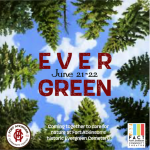 On Saturday, June 22 from 12:00 to 5:00 pm, join us for the Ever Green Benefit, co-hosted with Fort Atkinson Community Theatre (FACT). This special event aims to support tree stewardship and care efforts at the historical Evergreen Cemetery through donations. Enjoy art, a musical performance, a theatre production, and educational workshops focused on environmental care and stewardship. There will also be an ice cream sundae bar and a tree and plant sale, with all proceeds benefiting the historical Evergreen Cemetery.